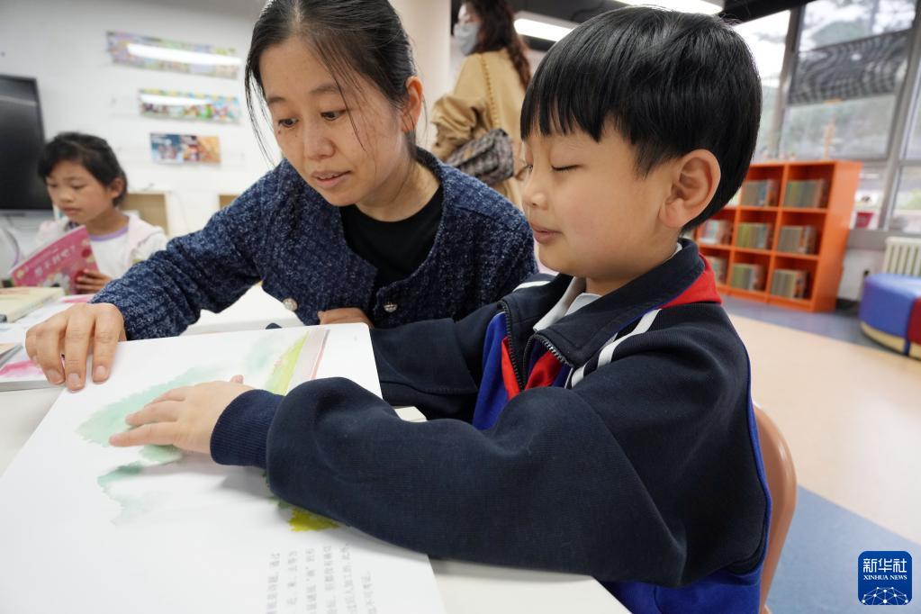 4月20日,盲童在“閱讀點亮你我”活動上誦讀明盲對照繪本。