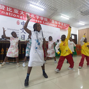 4月20日,在贊比亞首都盧薩卡,小學生在聯合國中文日活動上表演舞蹈。