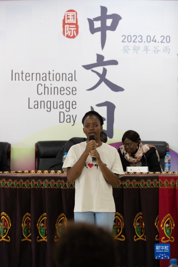 4月20日,在贊比亞首都盧薩卡,一名學生在聯合國中文日活動上表演朗誦。