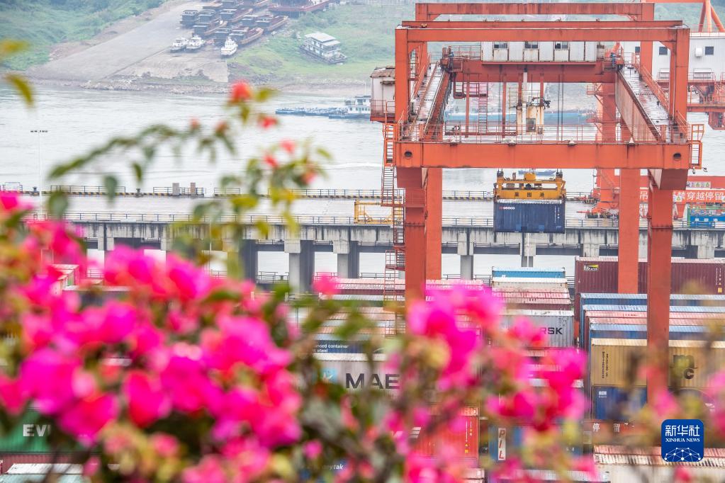位于長江重慶段的果園港,是我國內河最大的水鐵公多式聯運樞紐港。數據顯示,今年一季度,果園港區完成貨物吞吐量619萬噸,同比增長9.9%;集裝箱吞吐量23.1萬標箱,同比增長16.4%;商滾車吞吐量9.1萬輛,同比增長16%,三年來首次出現內外貿貨物雙增長。