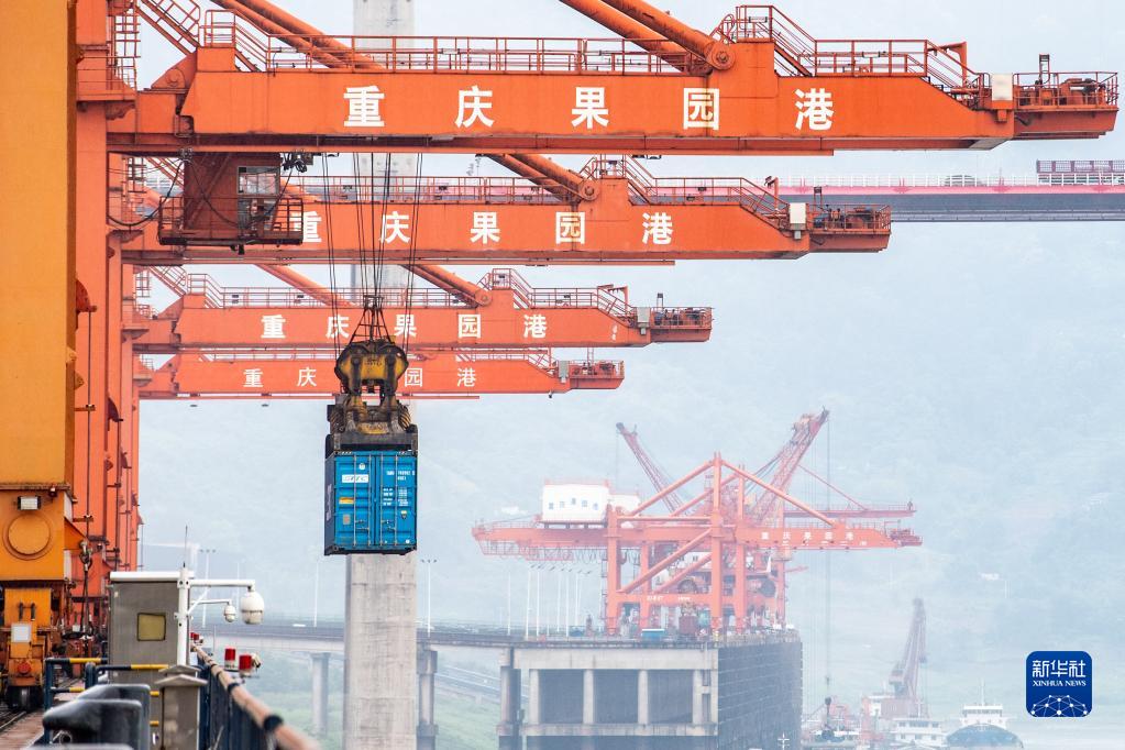位于長江重慶段的果園港,是我國內河最大的水鐵公多式聯運樞紐港。數據顯示,今年一季度,果園港區完成貨物吞吐量619萬噸,同比增長9.9%;集裝箱吞吐量23.1萬標箱,同比增長16.4%;商滾車吞吐量9.1萬輛,同比增長16%,三年來首次出現內外貿貨物雙增長。
