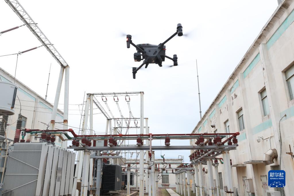 4月20日,無人機在福建平潭前進變電站附近開展自主巡檢作業。