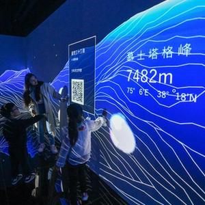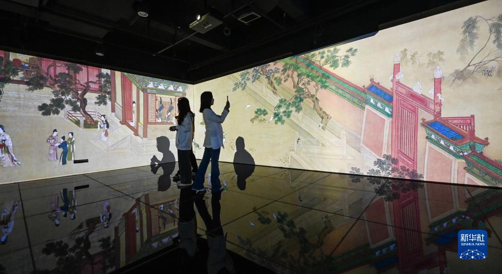 4月21日,讀者在嘉興市圖書館元宇宙閱讀體驗館的藝術課堂通過環幕體感投影學習古代書畫知識。