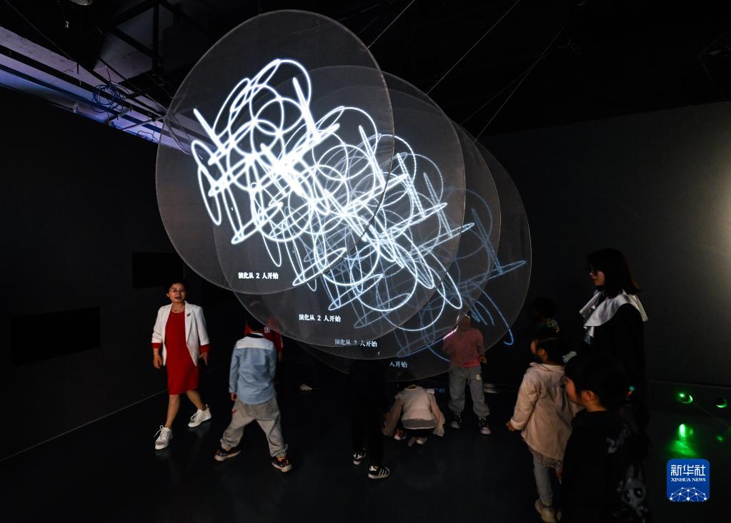 4月21日,嘉興市圖書館元宇宙閱讀體驗館的自然課堂正通過3D投影的方式介紹生命起源。