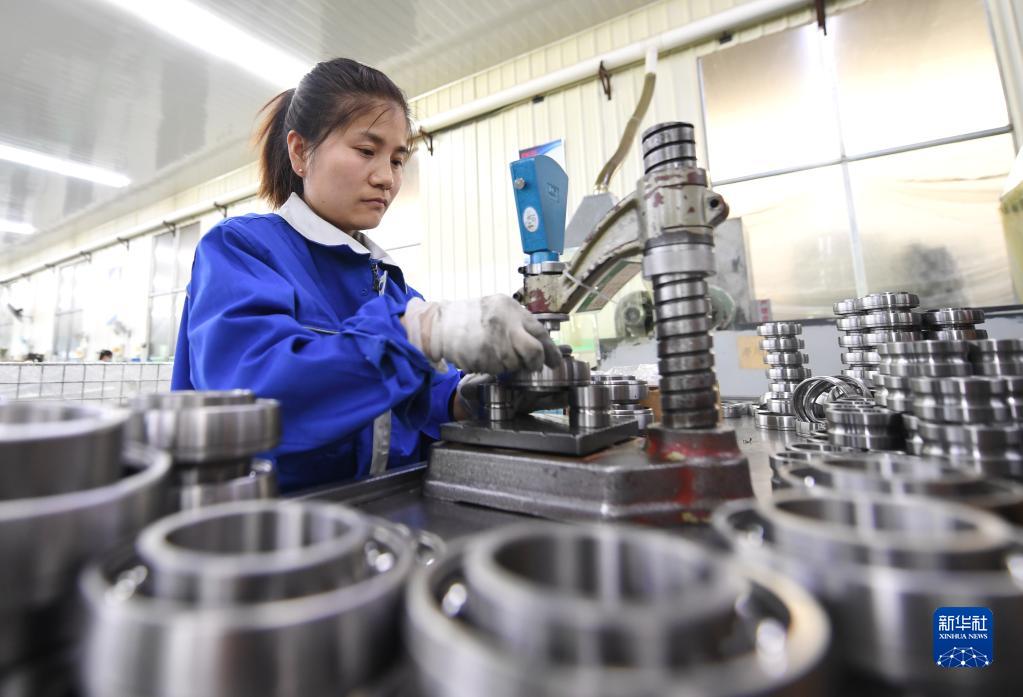 4月21日,河北臨西縣一家軸承生產制造企業工人在生產車間工作。
