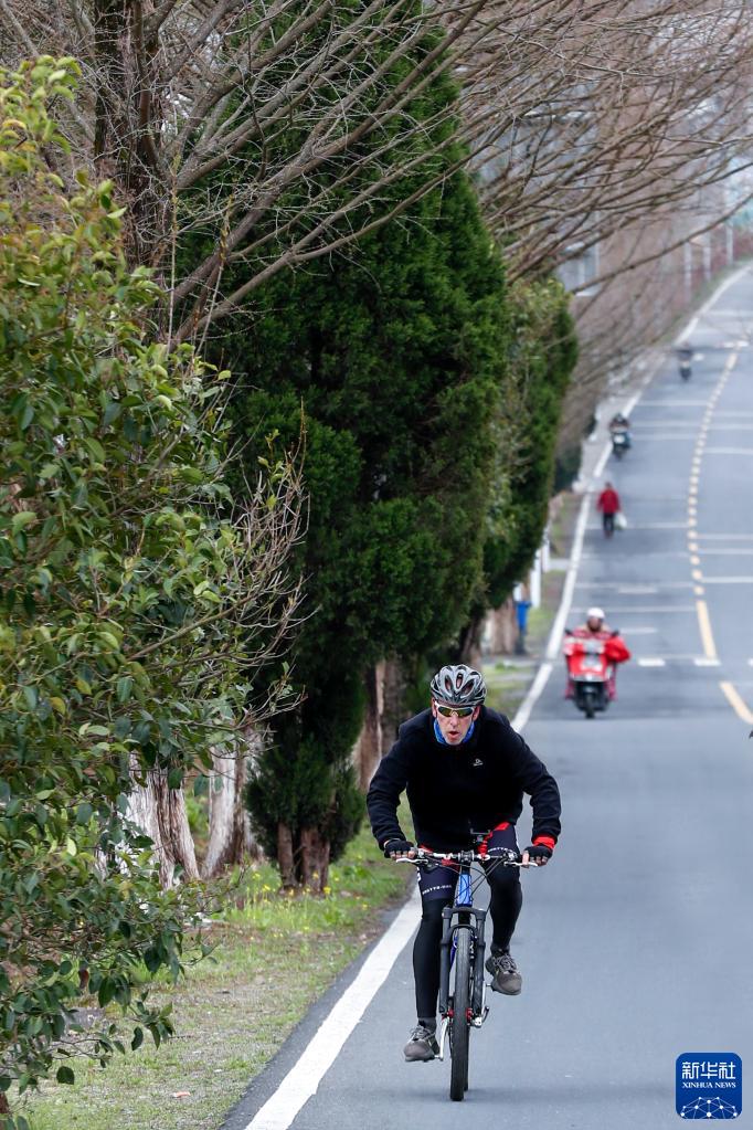 在黟縣塔川村經營民宿的德國籍老板阿明是今年自行車賽的參賽者之一。阿明出生于奧地利因斯布魯克,從小熱愛騎行。2021年6月,他和妻子黃瓊帶女兒來黃山旅游,被淳樸的民風、優美的環境和獨特的徽派建筑吸引。夫妻倆接手了一家兩百多年的古徽州老宅,經營起民宿生意,開啟了鄉村生活。平日不忙時,阿明就會去鄉間道路騎行。他說,黃山地區的地貌和家鄉阿爾卑斯山區非常相似,在這里騎行讓他有回到故鄉的感覺。