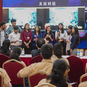 4月20日,印度青少年在位于新德里的中國駐印度大使館參加天宮對話——神舟十五號航天員乘組與上海合作組織國家青少年問答活動時與中國航天員代表視頻連線交流。