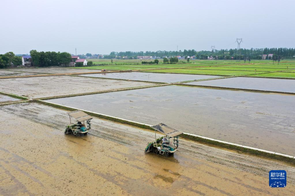 春耕時節,湖南省益陽市赫山區中塘村農民搶抓農時,將育好的水稻秧苗移栽入大田。旋耕機、插秧機在田間作業,無人機實施自動化施肥打藥,機械化作業助力春耕,為早稻豐產打下基礎。