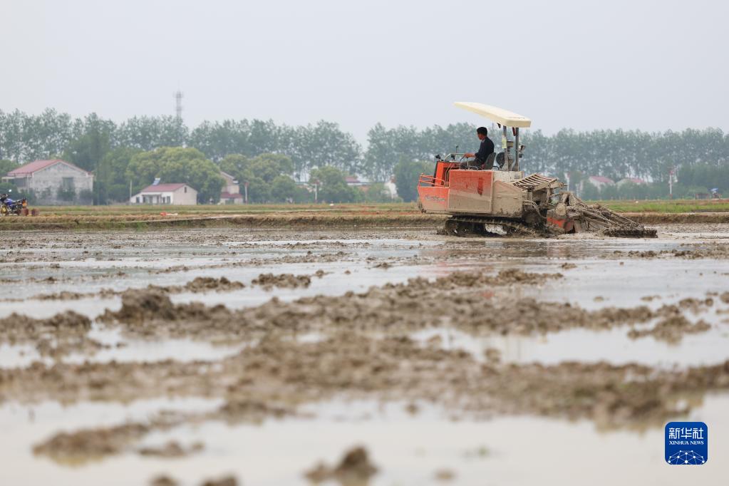 4月21日,在湖南省益陽市赫山區中塘村,農民駕駛農機在田間作業。
