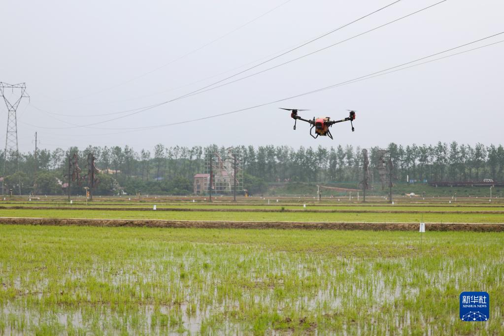 4月21日,在湖南省益陽市赫山區中塘村,植保無人機在田間打藥。