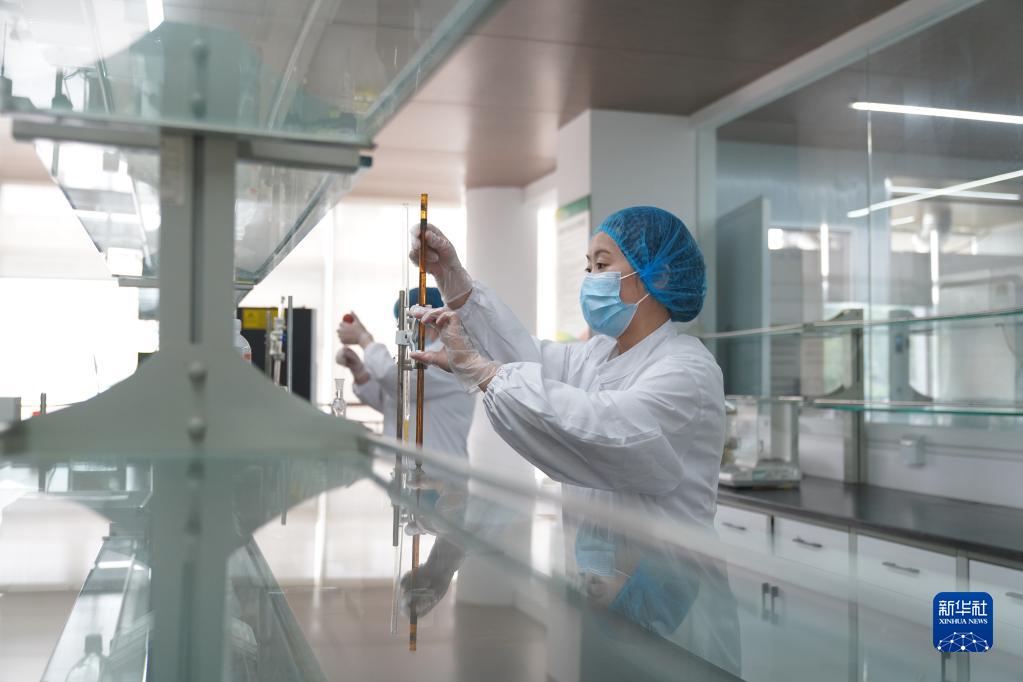 4月21日,在北碚天潤園區共享食品檢驗室,檢驗人員對送檢的食品進行檢測。