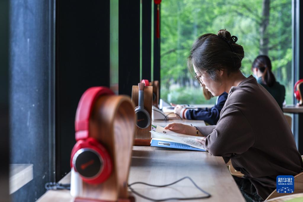 讀者在張家港市益空間·湖畔書房閱讀(4月20日攝)。