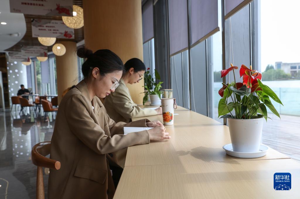 4月21日,讀者在張家港市沙洲湖益空間·源書房閱讀。