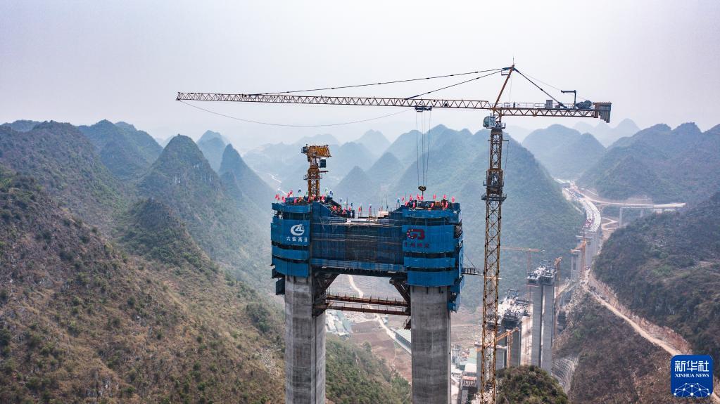 當日,由貴州交建集團投資建設的六安高速花江峽谷大橋6號主塔順利封頂?;ń瓖{谷大橋是六安高速公路控制性工程之一,預計2025年竣工。