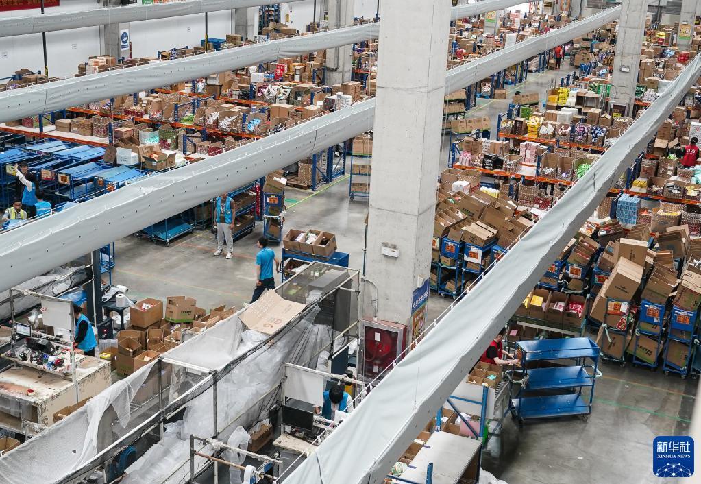 4月21日,員工在位于南京空港經濟開發區(江寧)一家企業的商超倉內忙碌。