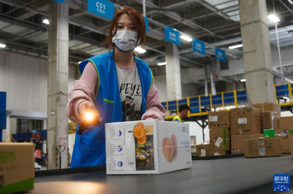 4月21日,員工在位于南京空港經濟開發區(江寧)一家企業的商超倉內忙碌。