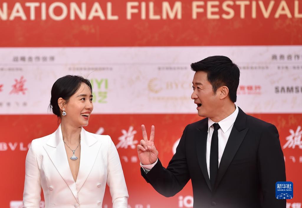 4月21日,《流浪地球2》演員王智(左)、吳京在紅毯儀式上。新華社記者 陳鐘昊 攝