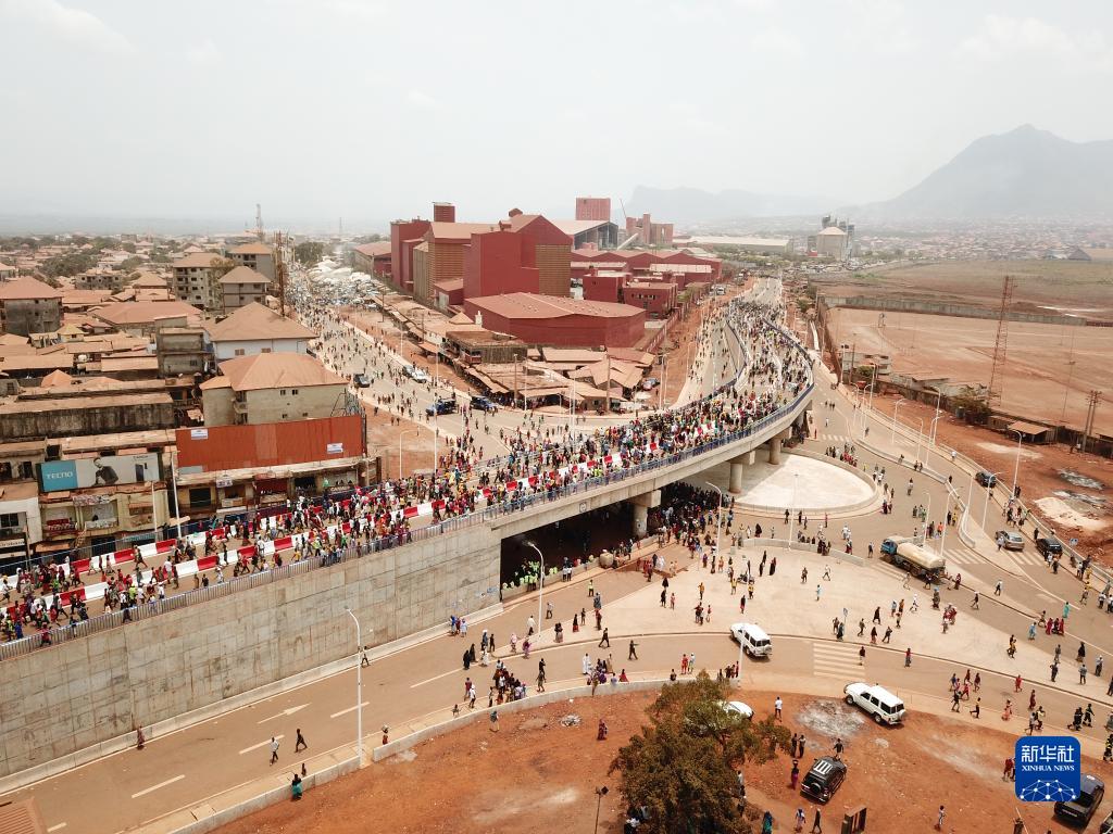 由中國企業承建的幾內亞科納克里卡格貝倫立交橋18日竣工通車。