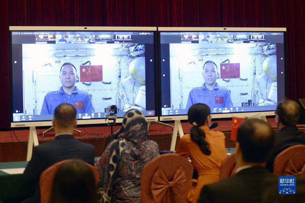 20日,天宮對話——神舟十五號航天員乘組與上海合作組織國家青少年問答活動舉行。
