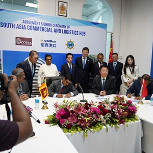 4月21日,中國招商局港口控股有限公司、斯里蘭卡港務局和當地一企業在科倫坡正式簽署南亞商貿物流中心項目協議。