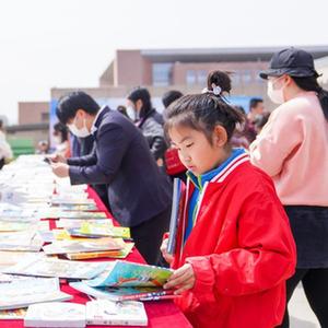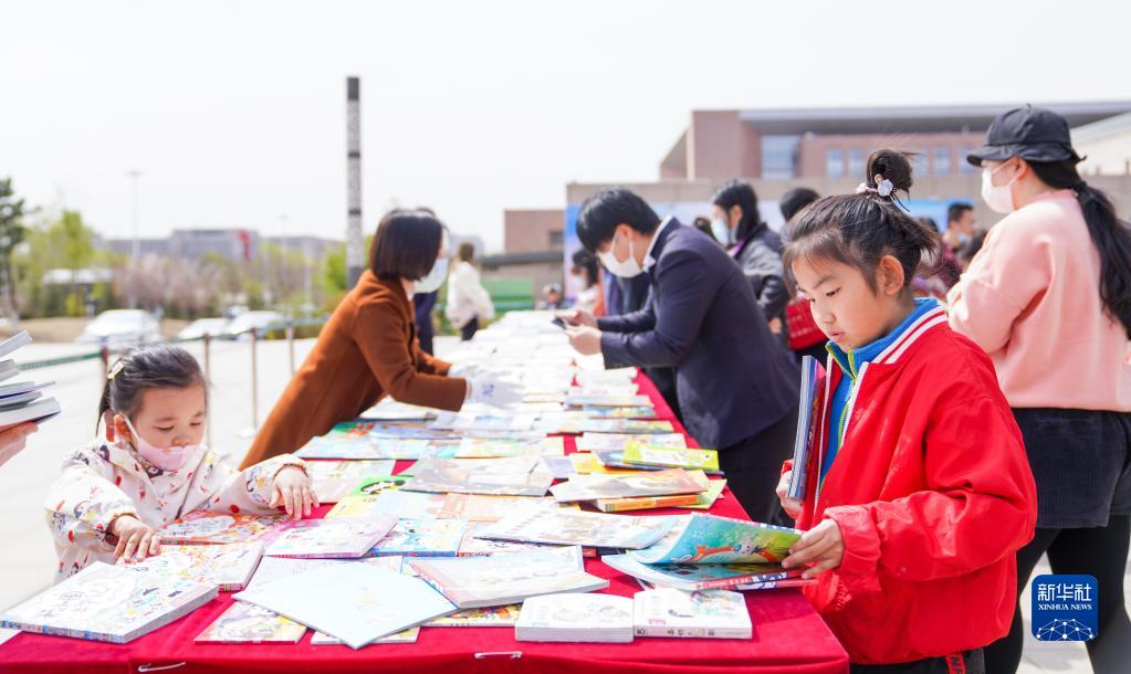 4月22日,市民在吉林省圖書館前的“換書大集”挑選圖書。