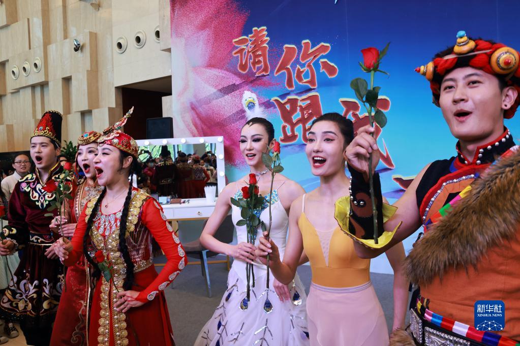 當日, “請你跟我一起來”中央民族歌舞團2023年公眾開放日活動在北京舉行。本次公眾開放日以“春”為主題,面向社會公眾發出邀請,近距離感受藝術精品的獨特魅力,傾聽臺前幕后的感人故事,以文化人、以藝通心。新華社記者 潘旭 攝