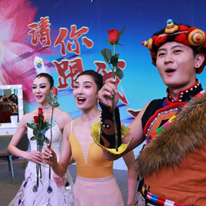 4月22日,身著民族服飾的演員在公眾開放日活動上近距離與觀眾互動。
