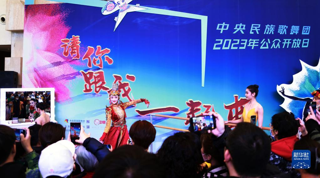 當日, “請你跟我一起來”中央民族歌舞團2023年公眾開放日活動在北京舉行。本次公眾開放日以“春”為主題,面向社會公眾發出邀請,近距離感受藝術精品的獨特魅力,傾聽臺前幕后的感人故事,以文化人、以藝通心。新華社記者 潘旭 攝