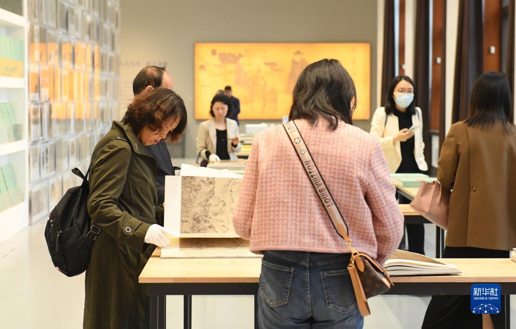 4月23日,人們在“中國歷代繪畫大系”特展上翻閱畫冊。