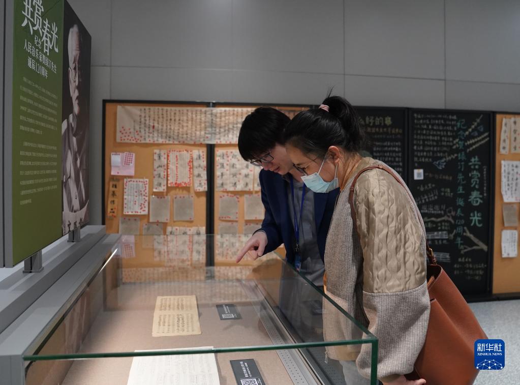 4月23日,“讀書這么好的事——來手稿主題館共度世界讀書日”系列活動在上海圖書館東館舉行,手稿展的策展人員向觀眾介紹展出的賀淥汀音樂作品手稿。