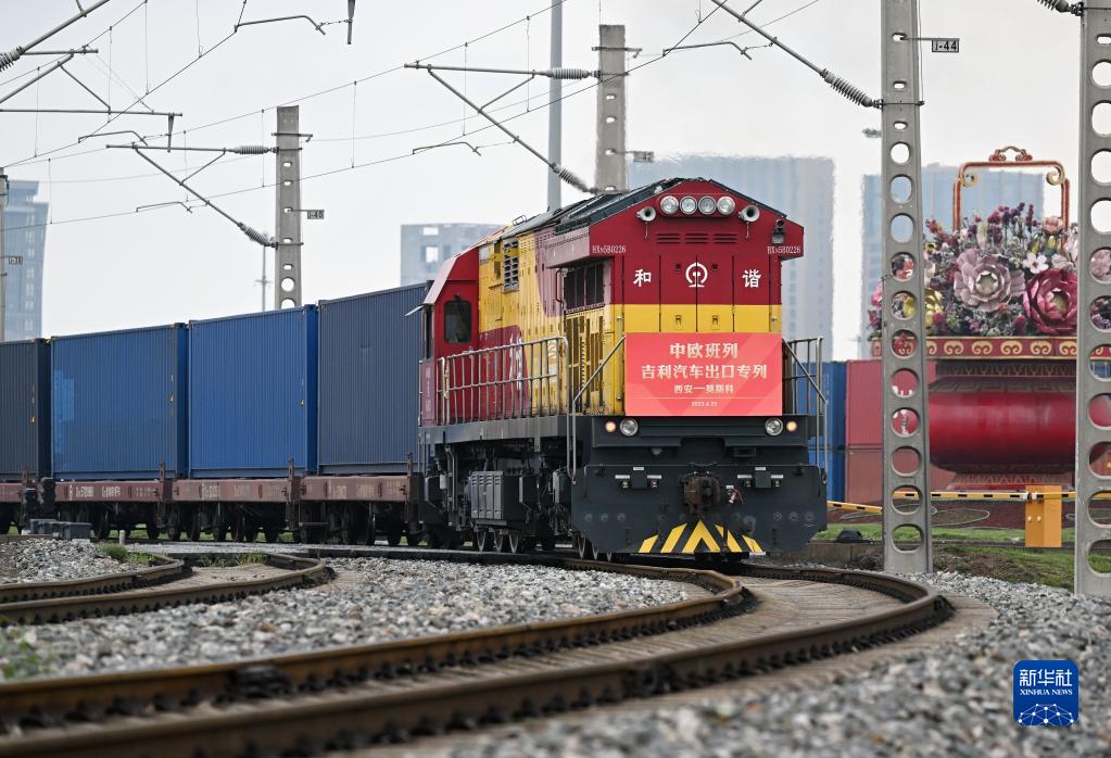 4月23日,中歐班列長安號吉利汽車出口專列從西安國際港站駛出。