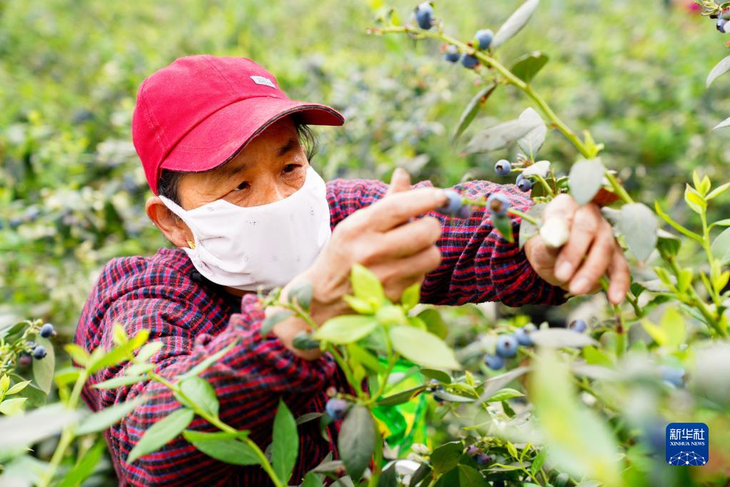 4月23日,村民在惠民縣淄角鎮鄉村振興產業示范基地采摘藍莓。