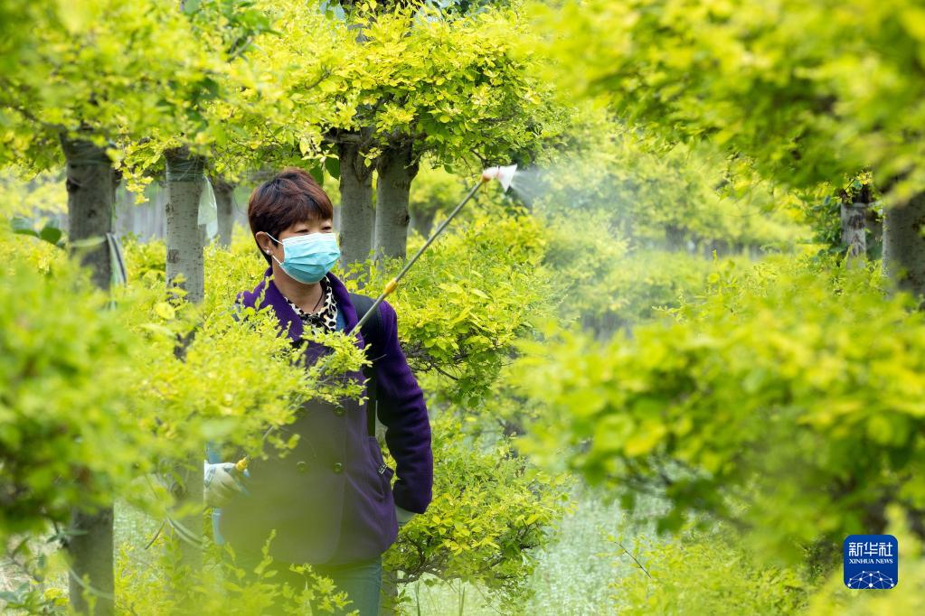 4月23日,在河北省辛集市王口村多彩苗木基地,工作人員對苗木進行病蟲害防治。