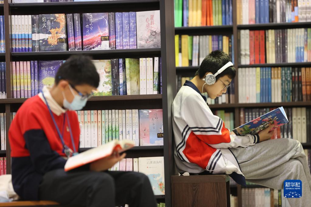 4月22日,學生在福建省廈門市思明區一家書城閱讀書籍。