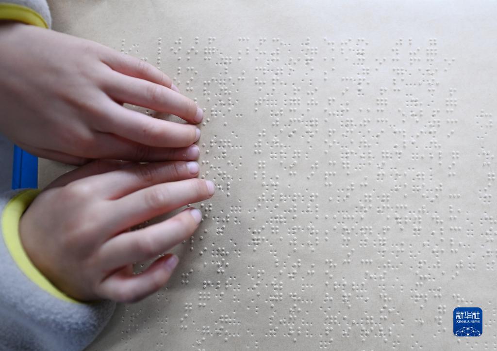 4月21日,湖北襄陽市特殊教育學校的視障學生在“閱讀”盲文圖書。