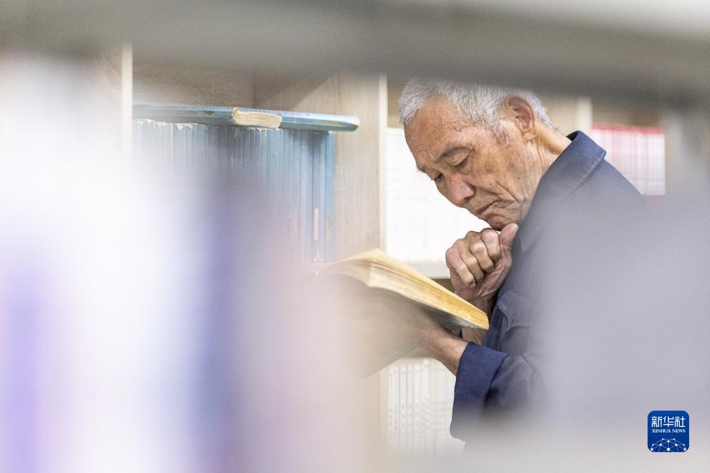 4月23日,一位老人在浙江省湖州圖書館讀書。