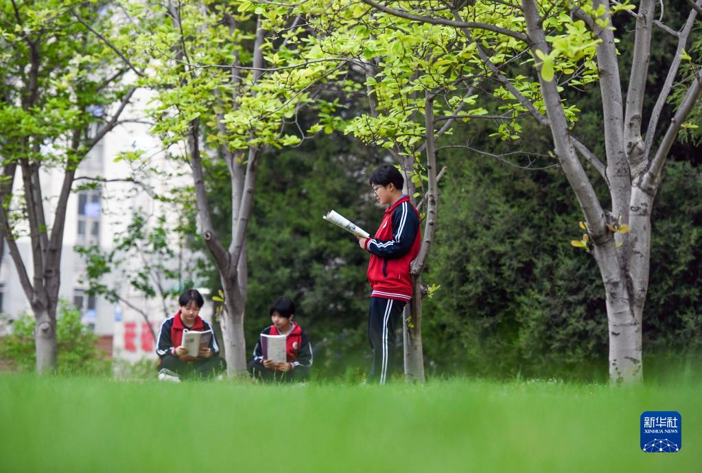 4月22日,河北省遵化市第一中學的學生在校園晨讀。