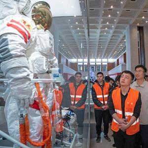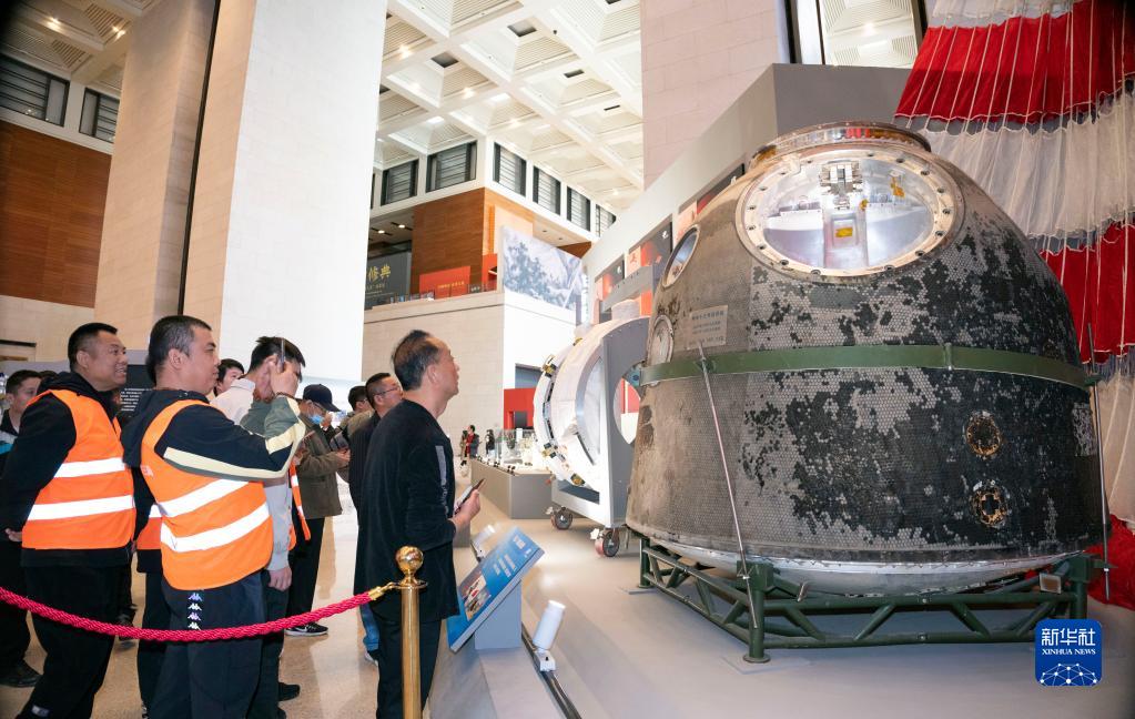 4月23日,中建三局順義航天產業園項目一線建設者在參觀“逐夢寰宇問蒼穹——中國載人航天工程三十年成就展”。