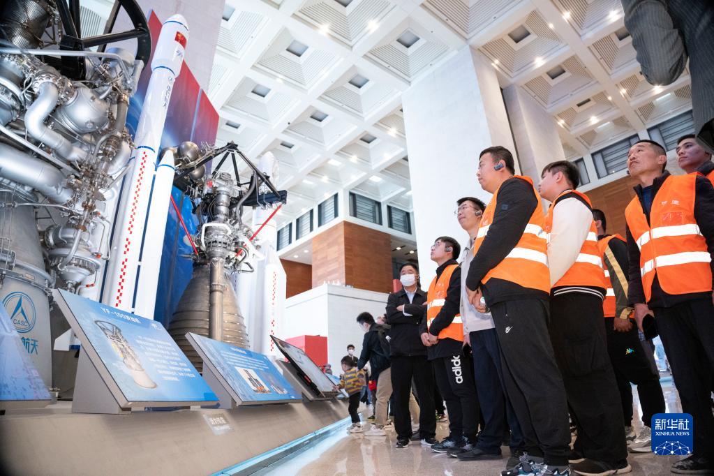 4月23日,中建三局順義航天產業園項目一線建設者在參觀“逐夢寰宇問蒼穹——中國載人航天工程三十年成就展”。