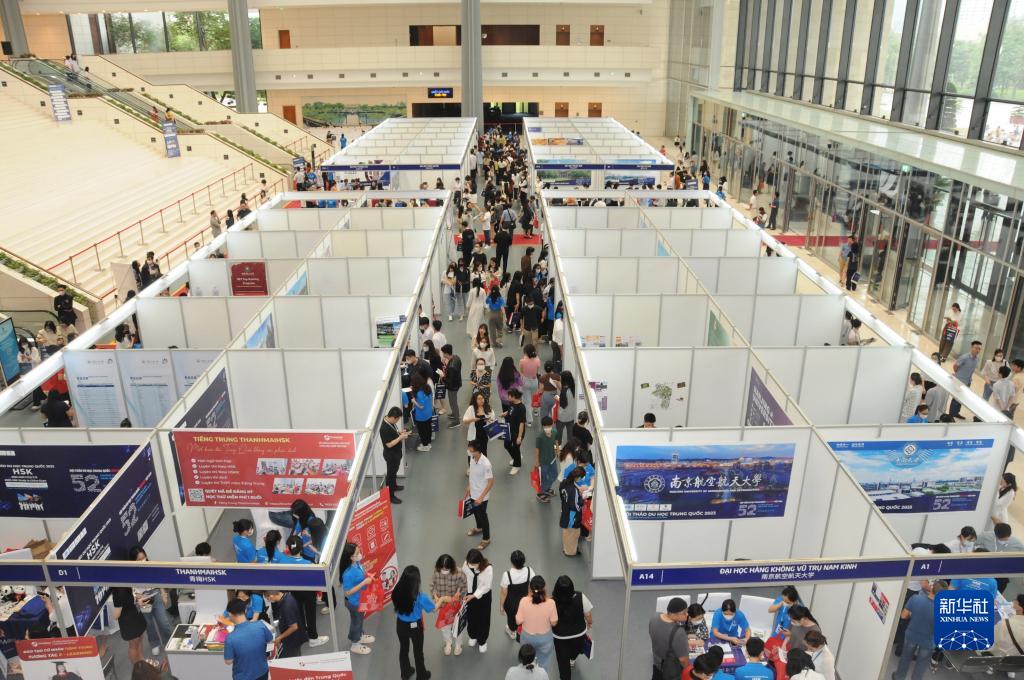 4月22日,在位于越南首都河內的國家會議中心,留學咨詢者絡繹不絕。新華社記者 陶軍 攝