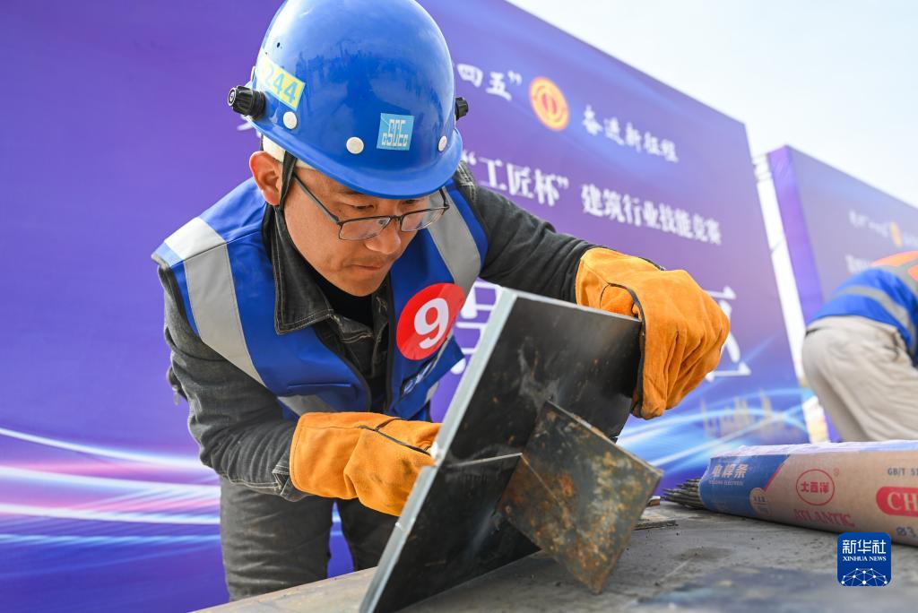 4月24日,建筑工人在參加職業技能比拼。