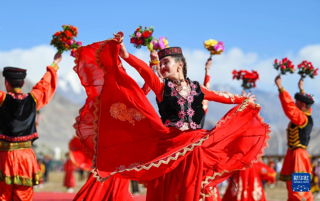 新疆塔什庫爾干塔吉克自治縣,歌舞演員在肖貢巴哈爾節系列活動上表演(3月21日攝)。肖貢巴哈爾節是塔吉克族的傳統節日,有“新年”“迎春”之意。