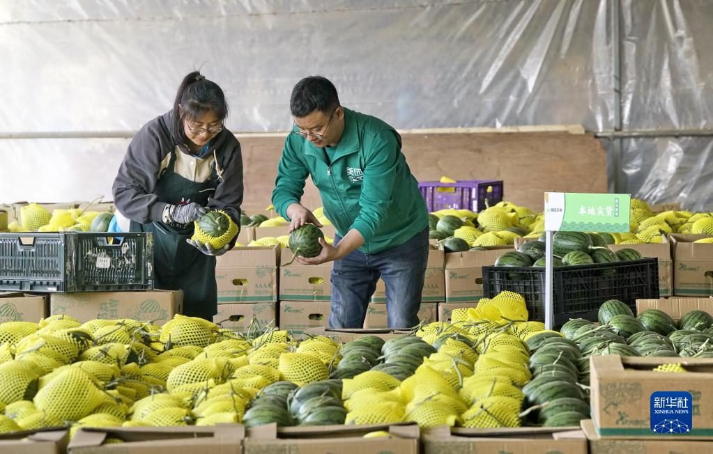 當日,北京市大興區龐各莊鎮政府和電商平臺聯合舉行了“頭茬西瓜上市 電商助力增收”的上市發車儀式,3000多個凌晨采摘的頭茬西瓜通過冷鏈運輸送到消費者手上。位于北京南部的龐各莊鎮是我國北方著名的西瓜產銷區。近年來,龐各莊鎮大力發展電商平臺直銷西瓜,并建設了西瓜種產銷溯源系統,助力提高瓜農收入。