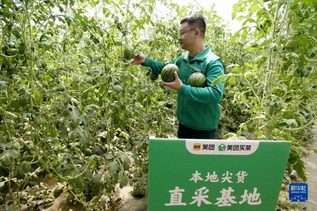 4月24日,電商平臺直采基地采購員在檢驗西瓜品質。