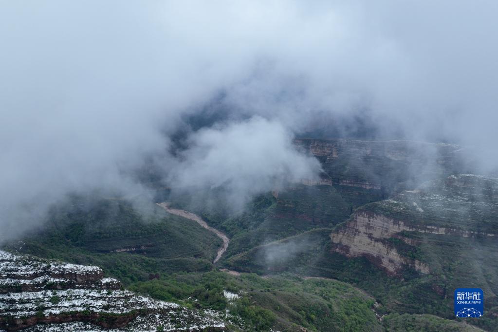 這是4月24日在河北省沙河市西部山區拍攝的云海景觀(無人機照片)。
