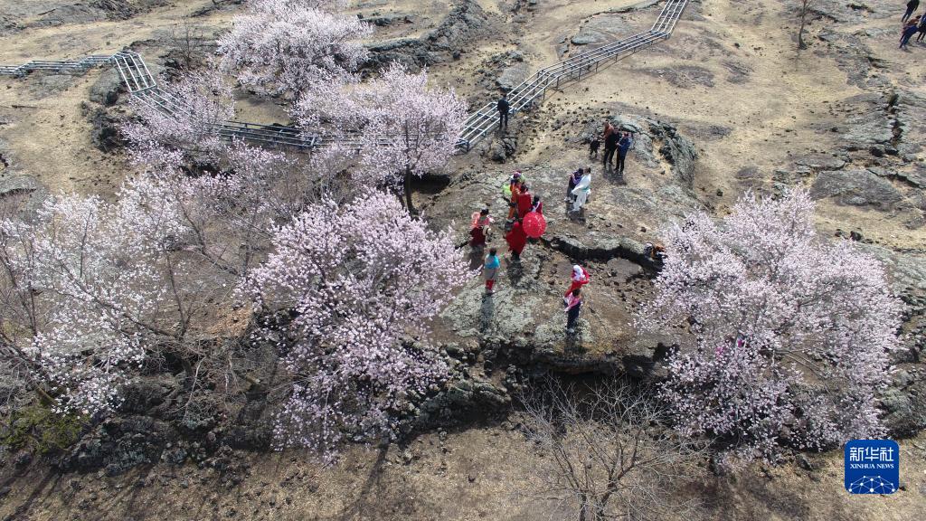 近日,位于黑龍江省牡丹江市的鏡泊湖世界地質公園內,各類花卉競相開放,吸引游客前來賞花游玩。