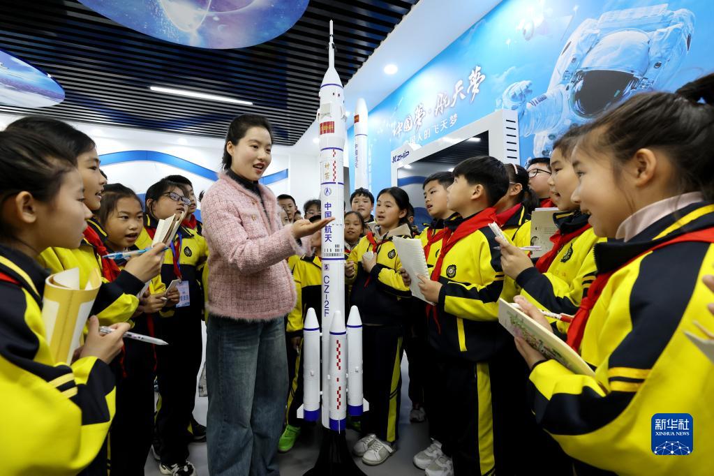 當日是中國航天日,形式多樣的航天主題活動為人們普及航天知識,激發孩子們的航天夢想。
