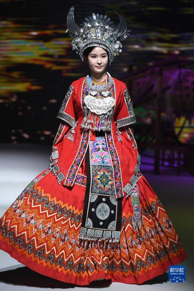 模特在廣西南寧市廣西文化藝術中心展示民族元素服飾(4月24日攝)。