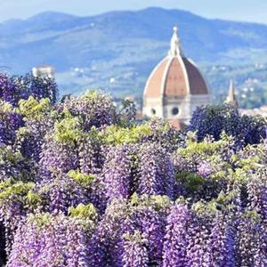 意大利佛羅倫薩巴爾迪尼花園近日紫藤花盛放,吸引眾多游客前來觀賞。