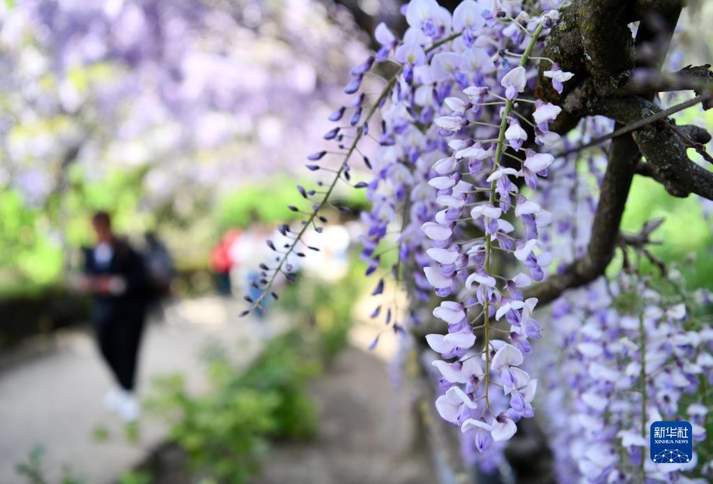 意大利佛羅倫薩巴爾迪尼花園近日紫藤花盛放,吸引眾多游客前來觀賞。